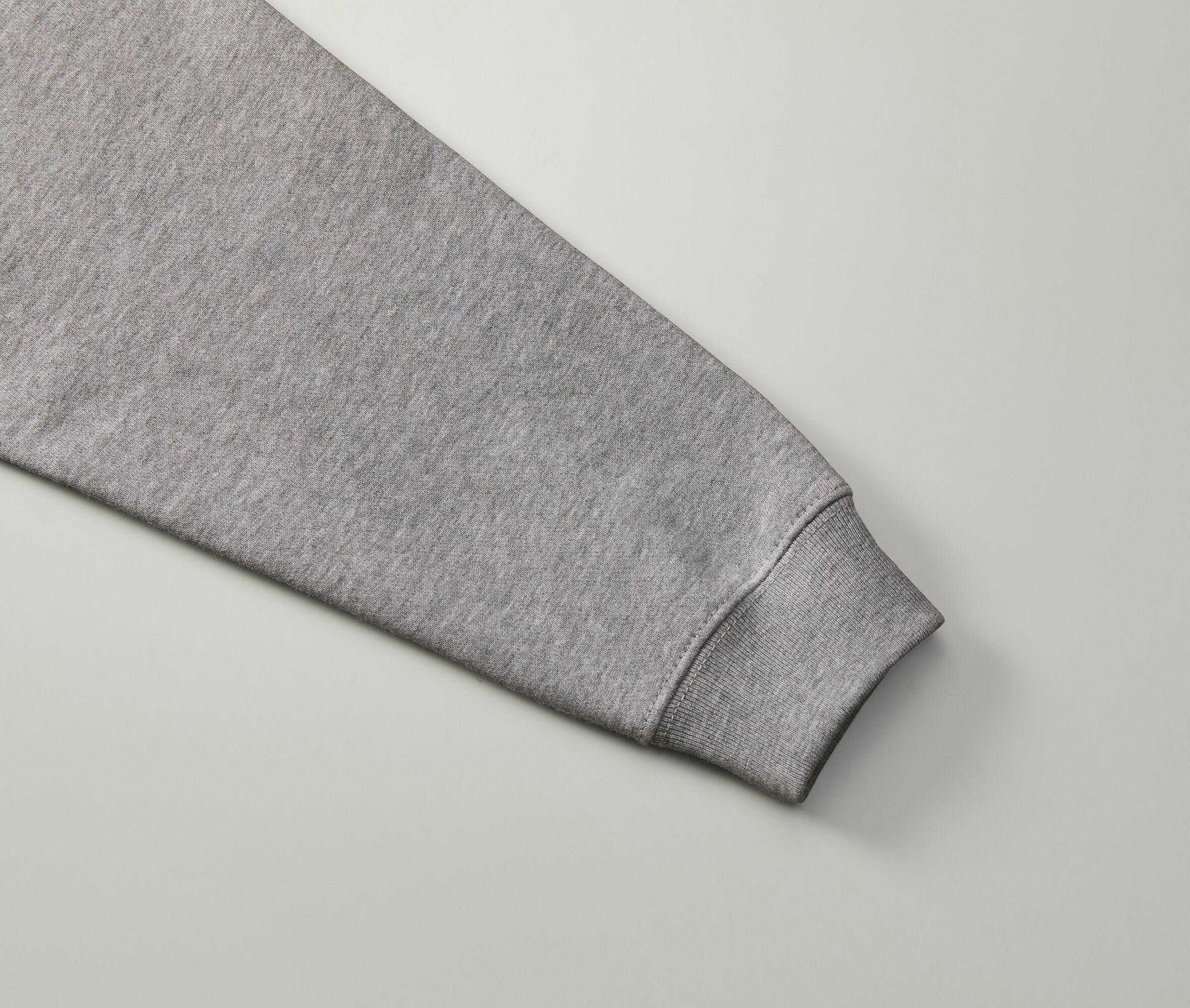 生地厚は一般的なスウェットトレーナーの厚さとなります。薄すぎず、厚すぎず、ちょうどいい定番トレーナーです。